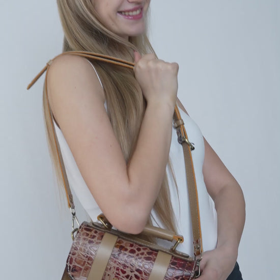 جلد طبيعي منقوش على شكل كروكو، متعدد الألوان